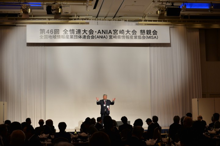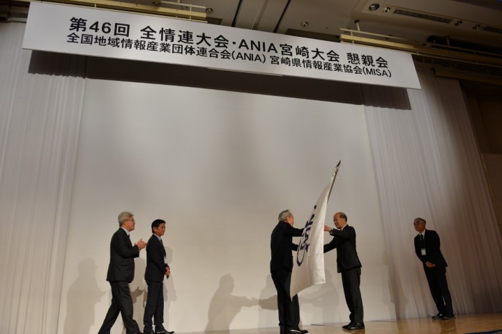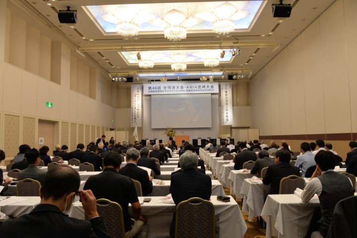 ANIAでは全国の会員企業等が一堂に会し各地域情報産業の活性化や、さらなる発展に向けた情報交流等を行うことを目的に、毎年、各地域の情報産業団体との共催で全国大会を開催しています。一昨年度は福岡市で、昨年度は甲府市で開催し、関係官公庁や自治体の皆様、全国の情報関連企業関係者など多くの方にご参加いただきました。今年度は、一般社団法人宮崎県情報産業協会との共催で、宮崎市で開催させて頂きました。