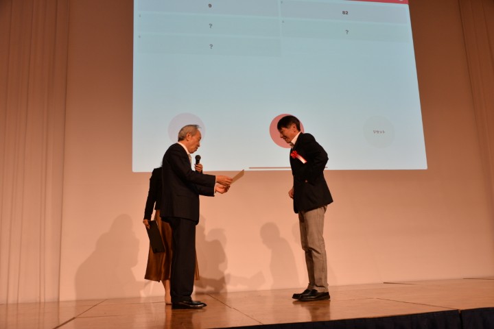 抽選会 1等の授与式 おめでとうございます、高級宮崎牛でした。 |